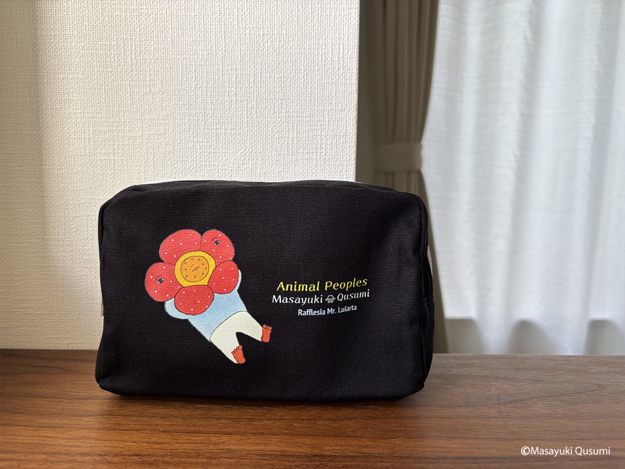 2024年の夏の個展「動物の人達」の中で、ノンノンと共に1番人気の「ルラータさん」がお洒落なポーチになりました。ブラックにルラータさんのビビットなレッドが映えてとってもお洒落。マチ付きで小物がたっぷり収納でき、旅行時にバッグ内で化粧品などを収納するのにも最適な便利アイテムです。