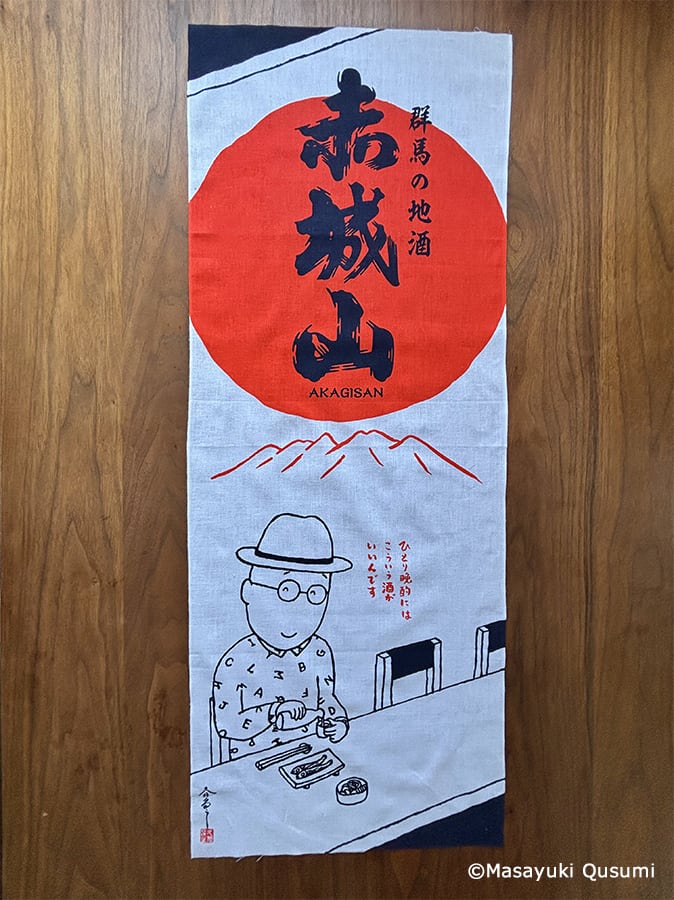 酒「赤城山」の酒瓶ラベルの絵を描き下ろした記念にてぬぐいを製作しました。