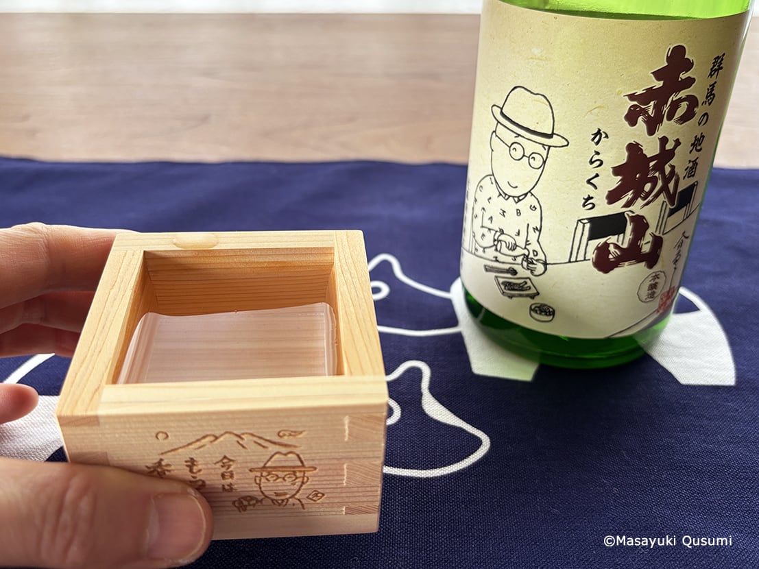 そんな五勺ヒノキ製枡に、オリジナルのイラストをレーザー彫刻しました。